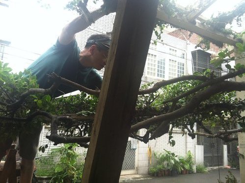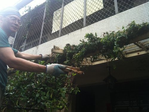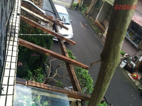 1995年搭雨棚時,對木料的要求不高,因此十幾年下來,木頭已有腐朽跡象。2012年6月,決定拆掉重做。