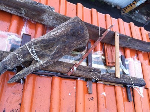 據他描述,經過打聽,賣我們屋頂瓦片的工廠已經倒閉,想找人修也找不到。要不然就換另一家廠商,全部重鋪。因為幾片瓦,要把其他全部換掉,DIY高手豈可忍受,當然要自己想辦法。