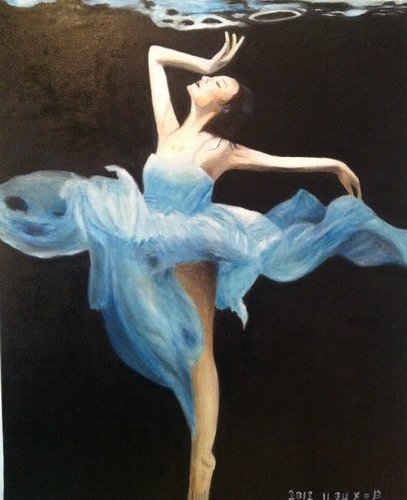 每畫一幅畫,都反映當時的心情。獨立於夜空下的舞者,踮足、挺胸、昂首。在黑暗中裙衫飛揚,似要凌風而去…。畫面總能傳達言語說不出的意境,即使自認善於表達如我,此刻竟也詞窮。(2012/12/5初稿,2013/11/4修改)