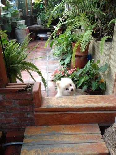 早上牠在玻璃屋探出頭的可愛模樣,大概是迴光返照的一刻吧!再見了,狗狗。(兒子给牠準備了名字~小白,用不著了)