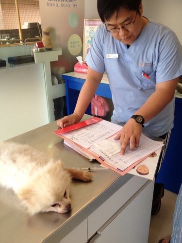 狗狗的情況不但沒有改善,好像更差。昨晚的搖尾巴與進食,宛如曇花一現。昨日的醫院今天休診,帶到另一家去看。檢驗結果,血紅素降到非常低,必須輸血。醫生懷疑可能還有未檢查出來的疾病,比方說,血液寄生蟲。可是今天醫院沒血可輸,只好請醫生想辦法調調看。但不保證救得活,隨時可能休克走掉。