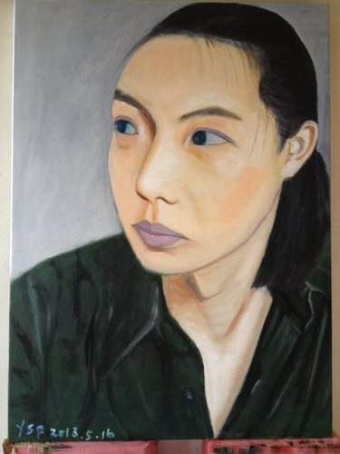 老公說,我的油畫不像油畫,像水彩。我知道他的意思,是指欠缺油彩層層堆疊的效果。這對我來說,確實是困難的。嚴格說來,我沒「學」過如何畫油畫;不敢堆疊,主要是因「藝不高」,所以「膽不大」。尤其是畫人物,很怕下筆太重就走樣。但仍接受老公的建議,加強一些色塊,希望看起來比較像油畫。