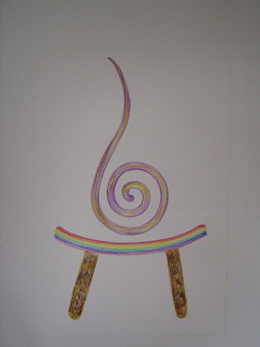 然後大草地變成.....羊皮書...清柔的黃黃綠綠的很清亮...上面有土黃色的記痕,這記痕不像以前我看到的有直直的、有橫的,而是非常簡單的像卜字,三個分散在羊皮書上.....,好多地方一直有紫光在旋轉,由中間旋轉往外