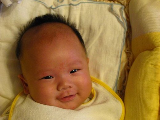 星期六和他爹二個為了要訓練孩子獨立, 所以這些天都讓他聽音樂睡覺, 大人都等他睡著了才進去, 二個"老人家" 就在客廳看著這幾天拍的照片, 二個滿滿的感動和知足, 完全忘了, 才剛被孩子操兵完, 原來...這就是傻父母的微笑~~