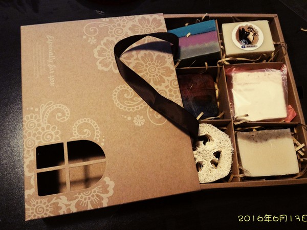 原本在工作室裡購買都是以紙袋做包裝喔~~ 考量到送禮需求 特地追加禮盒服務 目前提供公主粉及復古扶桑牛皮色兩種外型 可裝6塊皂,整體尺寸為~25x19.5x5cm 基本搭配是450元起跳 可以自行挑選...