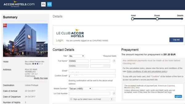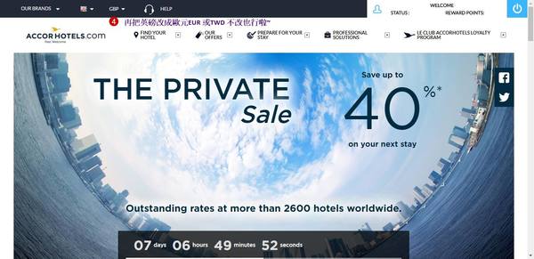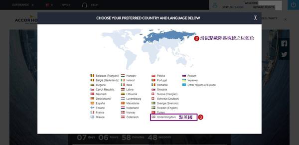 www.accorhotels.com 網頁選擇台灣是英文版,可選大陸中文版訂房,這次原要用中文版訂房給大家參考,但一直顯示有錯誤,只好換成英國版本訂房。