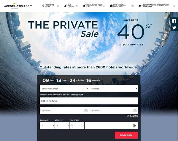 雅高酒店集團是一家大型的法國跨國企業,在將近100個國家中經營 雅高旗下酒店是歐洲旅館業的霸主,在全球擁有超過4000家旅館,涵蓋最豪華的酒店到最經濟的旅社。 正當煩著十月葡萄牙之旅無法訂到早鳥優惠 (雅高一年固定會有寒/暑假期的大特惠40%以上) 突然收到Email 通知祕密特惠,雖然葡萄牙是從2017/10/20開始特惠但還是有賺到4晚優惠