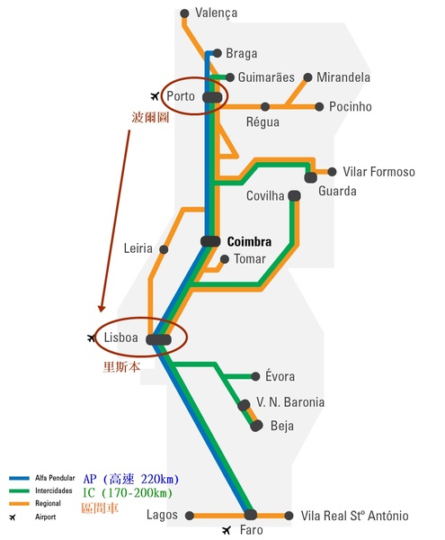 葡萄牙國鐵路線圖