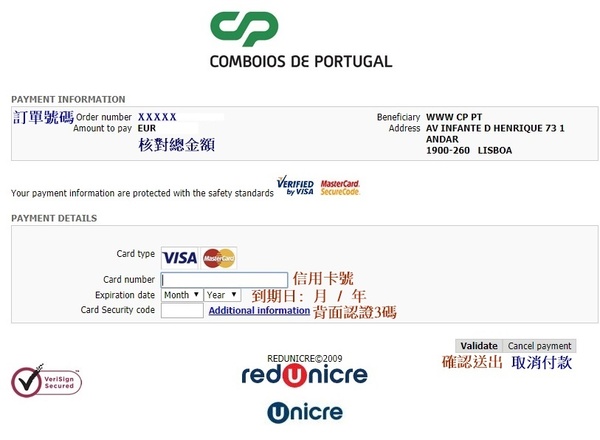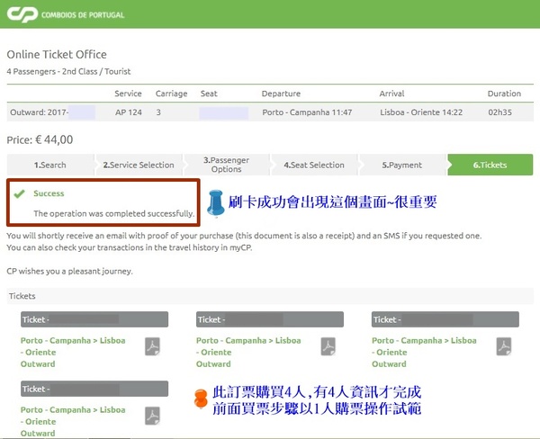 葡萄牙國鐵 CP註冊會員步驟五(完成)