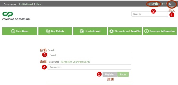 葡萄牙國鐵CP註冊會員步驟一