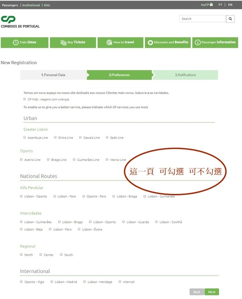 葡萄牙國鐵CP註冊會員步驟二