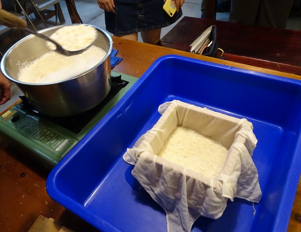 一到門口,老闆就招呼大家陸續就位,他要準備教學豆腐DIY囉~