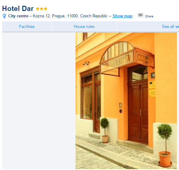 歐飛跟蘇對於住的方面,其實不會太計較,只要乾淨就OK。沒想到,在Booking.com被我找到這家古色古香的飯店Hotel Dar Prague ,地點佳,飯店出口巷子走到天文鐘廣場大約一分鐘即達。