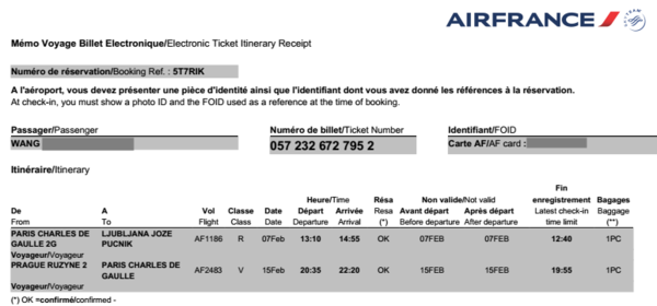 這次旅程目的地是捷克及斯洛維尼亞,所以歐飛也是研究了好幾天才發現到巴黎轉機是最省錢省時間的辦法。原先我們想台北-法蘭克福來回,但因為我們要搭的歐洲內地航空在巴黎才有停點。如果經由法蘭克福飛出轉回,費用太嚇人了!
