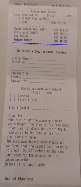 聽說有很多家退稅公司,但這次到德國拿到的退稅申請單