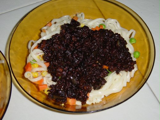 | 一向少下廚,廚藝不提也罷,但這次去新加坡度假小住,卻興致勃勃洗手作羹湯,擺出來倒也似模似樣。其實炸醬麵不管怎麼做都差不多,但這盤炸醬麵很特別,新加坡是絕對國際化的都市,食材當然來自五湖四海:日本的涼麵條,韓國的甜麵醬,美國的青豆和玉米,新加坡的豬肉和胡蘿蔔,馬來西亞的洋蔥和馬鈴薯,湊在一起五色全,五味佳,好吃。 |