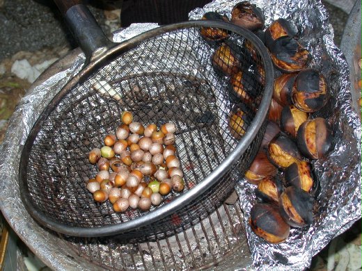 我們家旁邊的森林裡頭有許多栗子樹, 每年秋天我們都會提個籃子去撿栗子, 第一回也是沒[開刀]就放進烤箱, 然後我就去看電視, 結果廚房傳來乒乒砰砰的聲音, 我心想: 我是烤栗子, 又不是爆米花, 進廚房一看, 栗子炸彈們都在烤箱裡開花囉! 現在想想還真有趣! - 8樓.2006/03/02 10:45栗子旁邊的是橡樹子嗎?