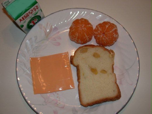 栗子麵包,起司,牛奶,濟州島小桔子,是我每天早上在匆忙中,輕易就能準備出來的極簡早餐。
