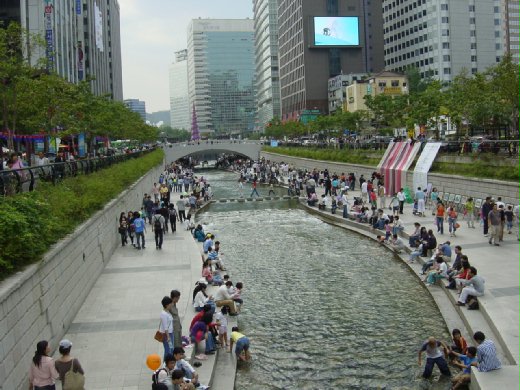 假日漫步在清溪川街頭,老老少少一派輕鬆,依然悠閒享受秋高氣爽的好天氣,清溪川開通僅僅一年,下游生物鏈已然形成,漫遊溪邊也成為首爾人的最愛。看著歡樂的人群,不知不覺中,我也放寬了心情,有時候何妨學做一隻埋頭沙堆的鴕鳥。