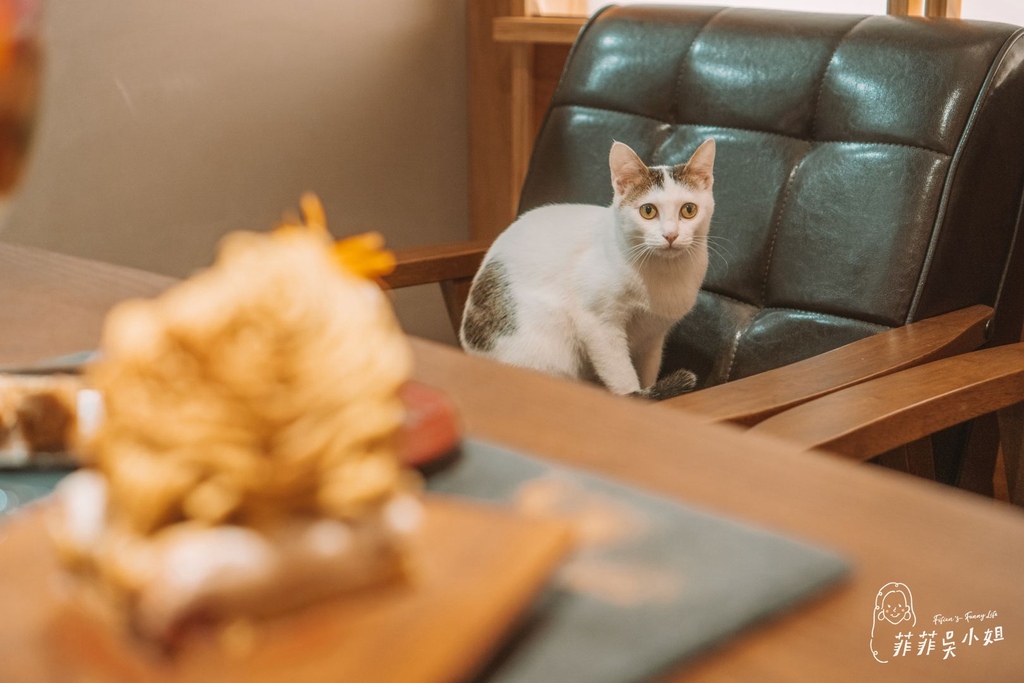 三萩茶會還有一隻鎮店之貓「吉吉」,可愛的白斑貓好親人。