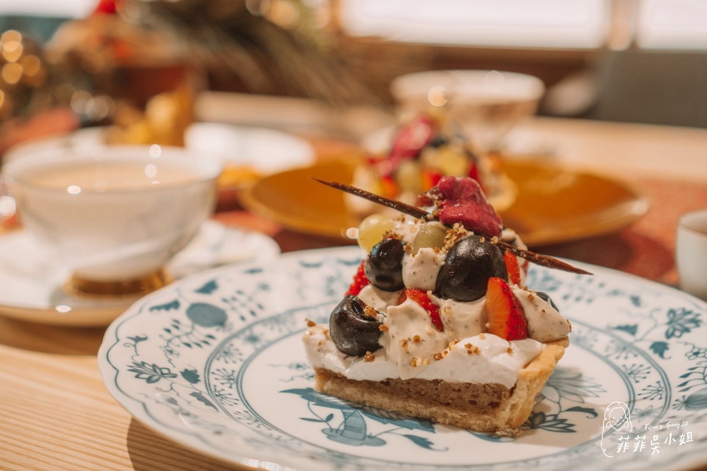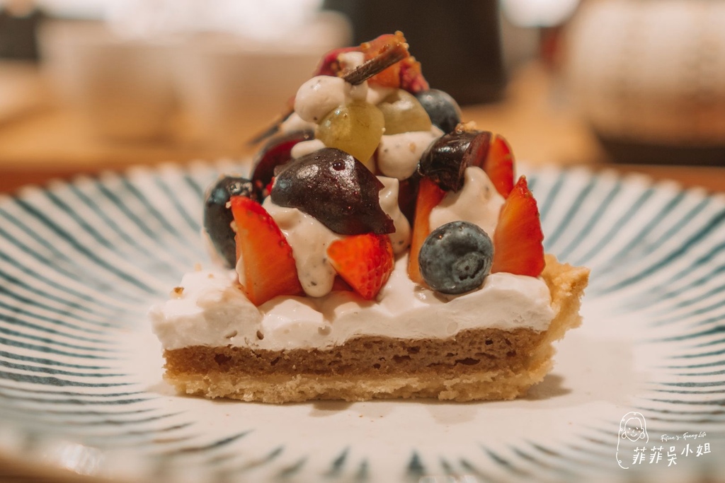 今天我最愛的是這道水果奶陷塔,以豆腐發酵奶油、椰奶卡士達,餡料選用的是杏仁餡,上面舖著各式莓果,混合著二種奶油與杏仁餡,加上烘烤酥脆塔皮的香氣,不甜不膩又吃得出豐富層次感。