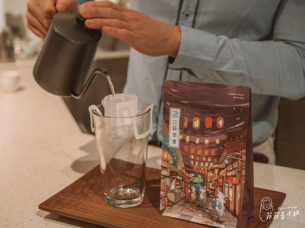 只聽過有耳掛式咖啡,第一次看到耳掛式茶包!三萩茶會特別選用日本茶葉專用濾紙,比起一般茶包,它能更好的將茶葉徹底紓展開來,繁忙的現代人,百忙中還是希望保有生活儀式感,上班擺不了整桌隆重茶席沒關係,因為它滴漏緩慢,據說很多工時長的工程師們特愛這款耳掛式茶包,看著緩緩滴落的茶湯時感覺特別療癒!
