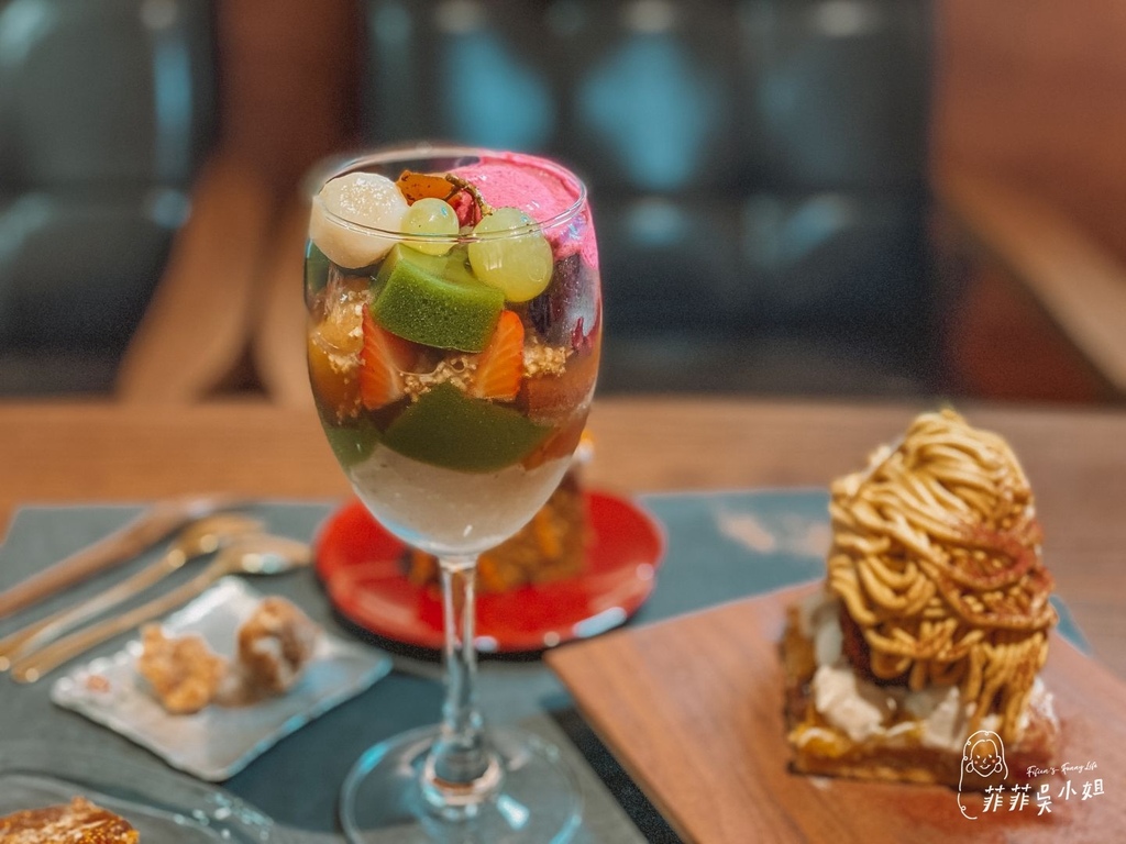 扯遠了,甫一出場就抓住眾人眼球的日式parfait,從最上層的火龍果慕斯、糰子、各式以香料紅茶熬煮而成的水果漬,抹茶凍…等層層交錯,吃起來口感很是特別,而且色彩鮮豔非常好拍!