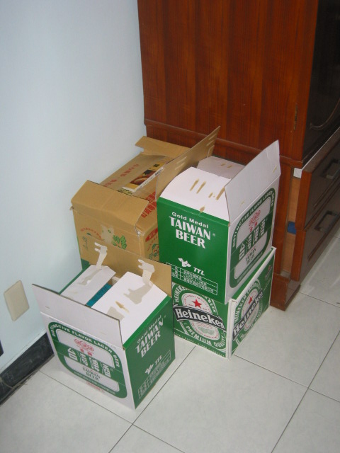 圖片(3):整理房間後,因有一個書架毀損,將一些平常不太看的書裝箱。