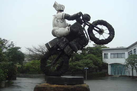 【朱銘說:看喔.好多人在排隊.下雨天也來哩.足感心!】