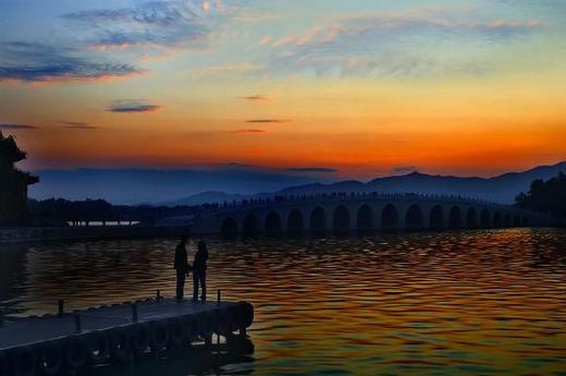 我在長廊上遙指昆明湖對岸的十七孔橋問小蕭:
