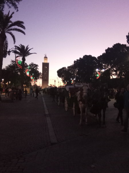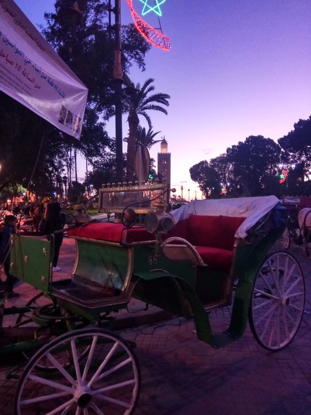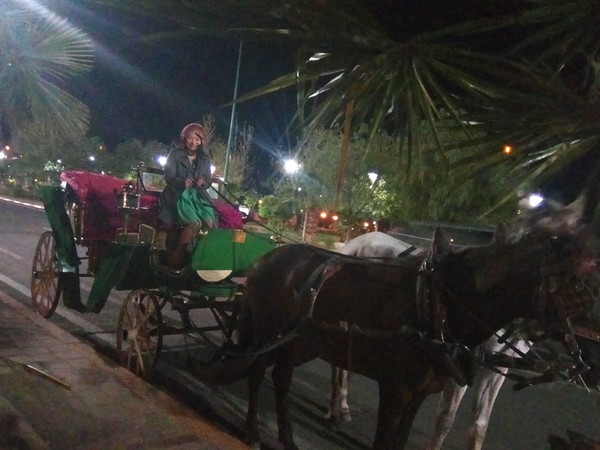 搭乘馬車前往舊城區,在這座充滿中古世紀風情的城市裡,感受馬拉喀什無所不在的魅力。昔日的舊都城——巴西亞宮殿巴迪皇宮 (EL BADIA PALACE )像是人老珠黃的遲暮美人,讓人憑弔的斷垣殘壁,有種歷盡滄桑的美感與投降於時間的無奈。而日夜喧囂的熱鬧傳統市集,企圖延續著中世紀的繁華景象,這裡的建築和街巷都像在訴說著一則則一千零一夜的神秘故事。