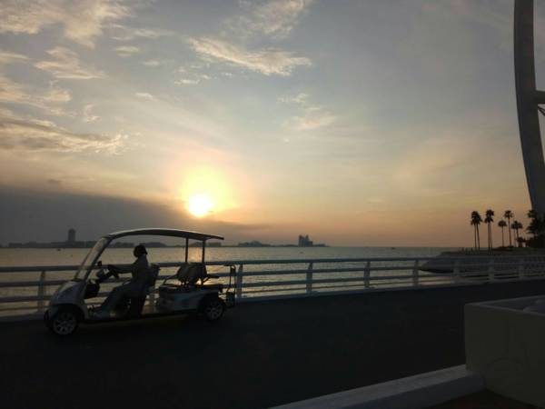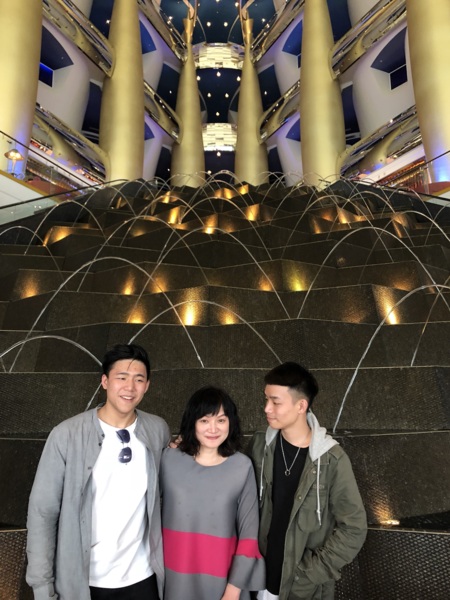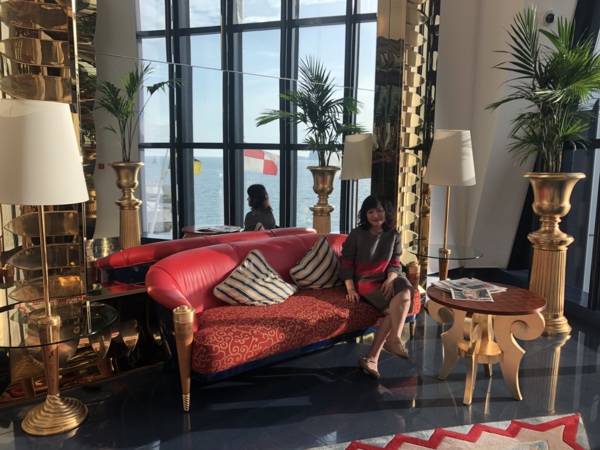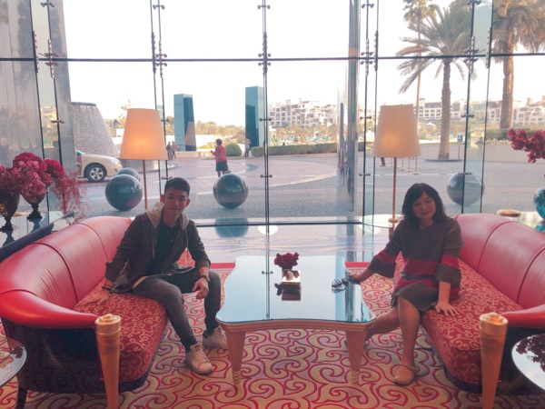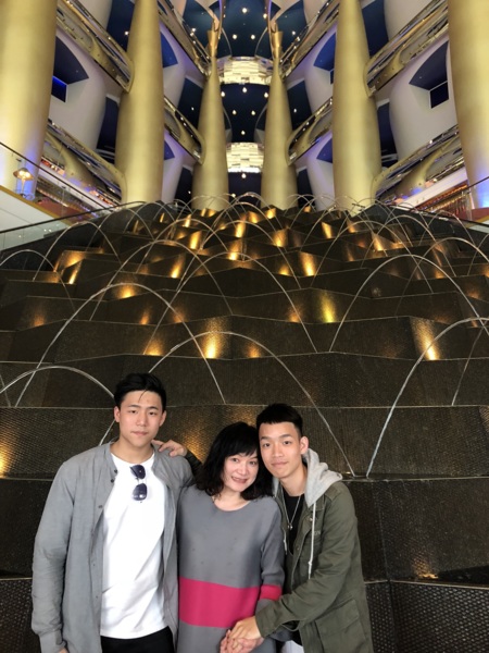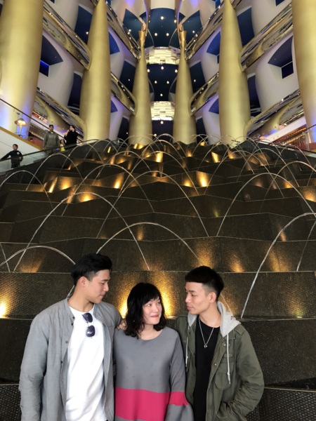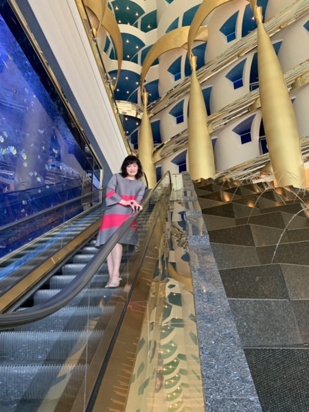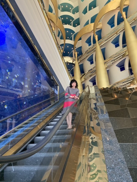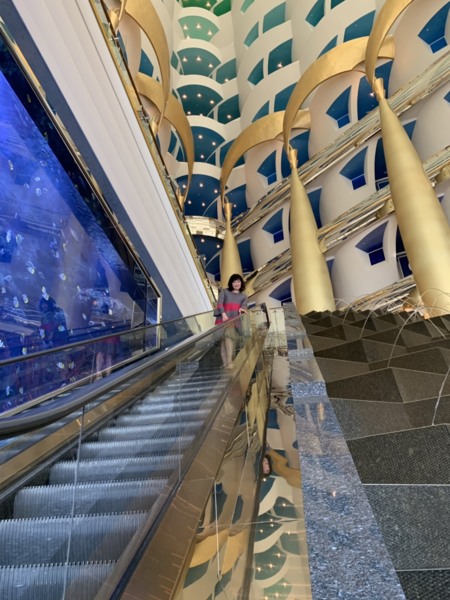 2011年我們參加鳳凰旅遊的二人團,地道兼司機,照團體行程走,住在帆船飯店的22樓(總共28樓),每一個房間有二層樓(樓下為客廳),浴室用品都是「愛馬仕」離開時可帶走,晚上在海底餐廳用餐,氣氛很好。