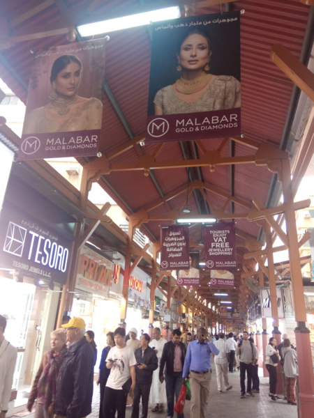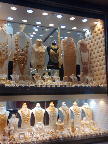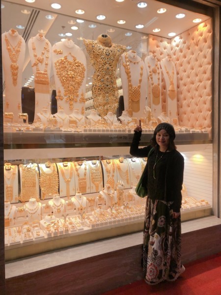 而耀眼的又莫過於黃金市集 (Gold Souk)裡每間店鋪櫥窗造型特別的展品──黃金球鞋、黃金棒球、金縷衣,金光閃閃,不俗又給力呢!