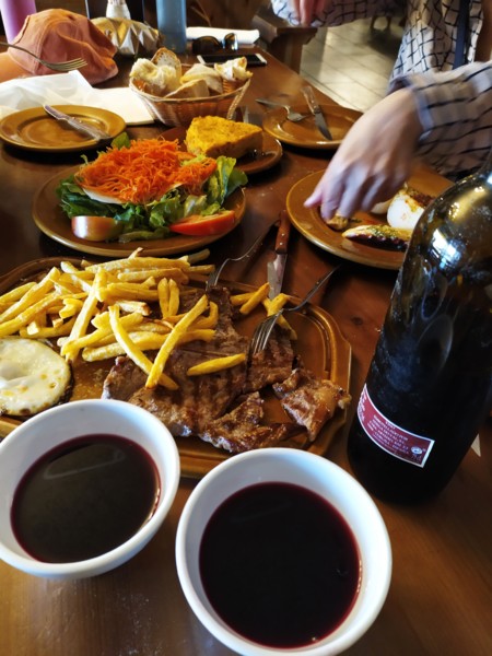 老闆看我們紅酒配牛肉吃得津津有味,把整瓶紅
