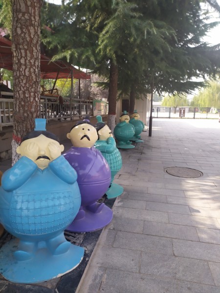 導覽員說:「在當地有一句對聯,上聯是:翻身不忘共產黨,下聯是:致富還靠秦始皇,橫批:感謝老楊。」她也希望旅人們在出口處能跟當地兜售的小販買些柿子、石柳、紀念品補貼他們當時毫無條件的遷村,而順利保留了這「世界八大奇蹟」。
