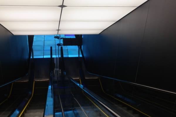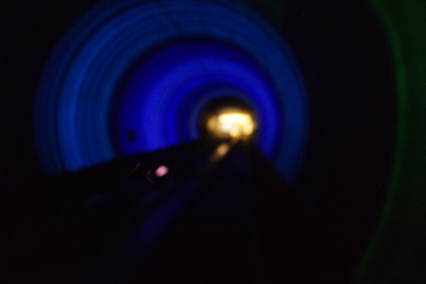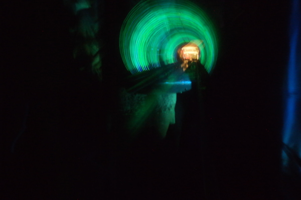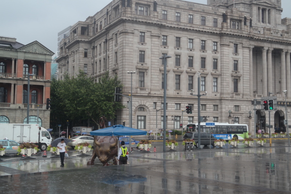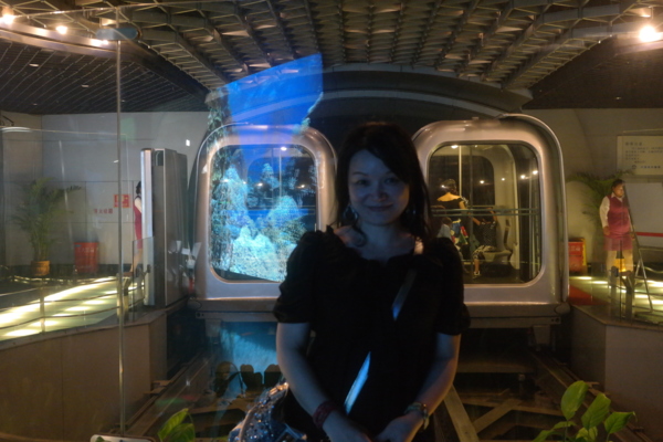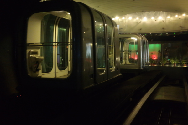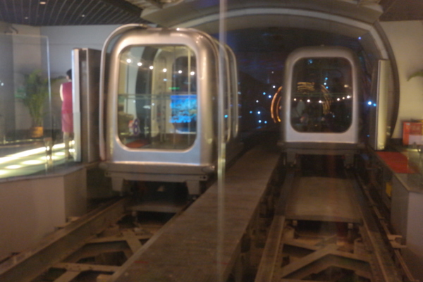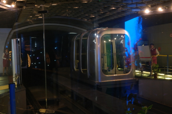 在陰雨中的外灘散步往「陳毅廣場」北側的「外灘觀光隧道」走去,搭上從法國引進的無人駕駛的車廂,全透明的車廂,隨著進入646.