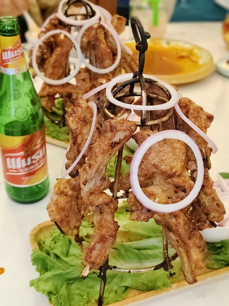 冰涼爽口的烏蘇啤酒搭配羊肉,真的太過癮了!