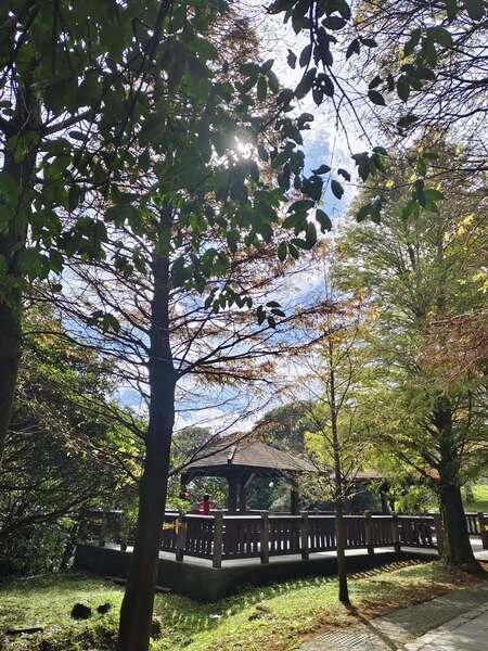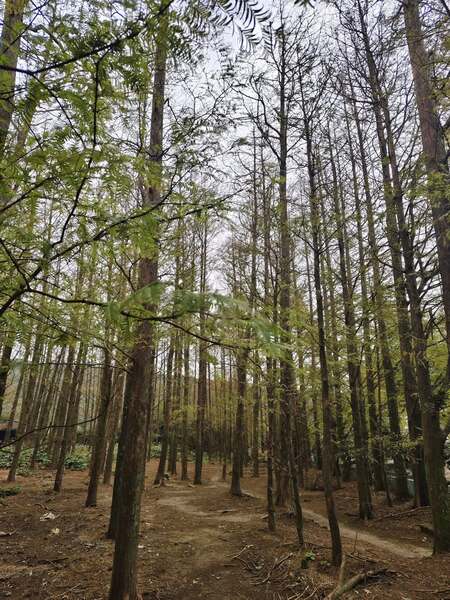 落羽松羽狀的葉子在風裡輕輕發亮,