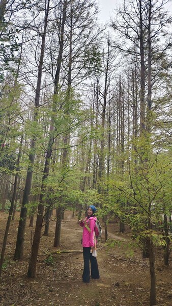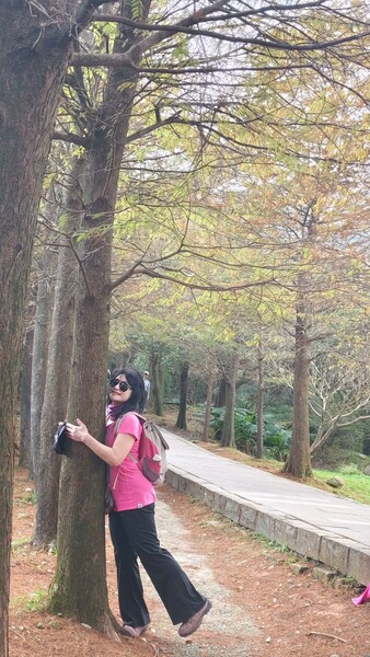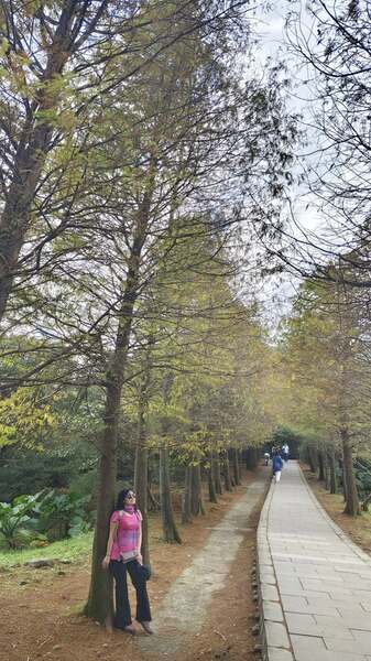 沒想到先迎接我們的是一整排悄悄轉色的落羽松。