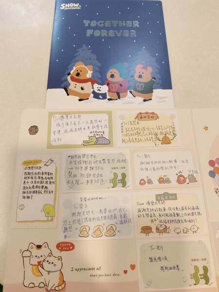 學生們遞來的手寫卡片更讓人動容——