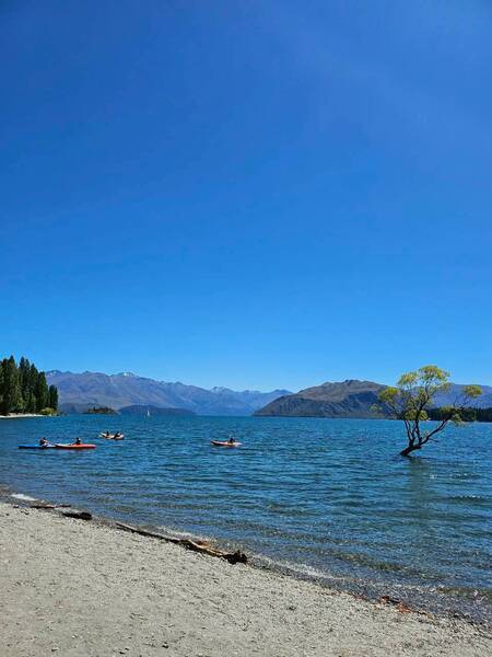 紐西蘭的清晨總是來得特別溫柔,尤其在 Wānaka 這樣被群山與湖水環抱的小鎮裡,一走出民宿,就像被推進一幅安靜卻充滿生命力的畫。