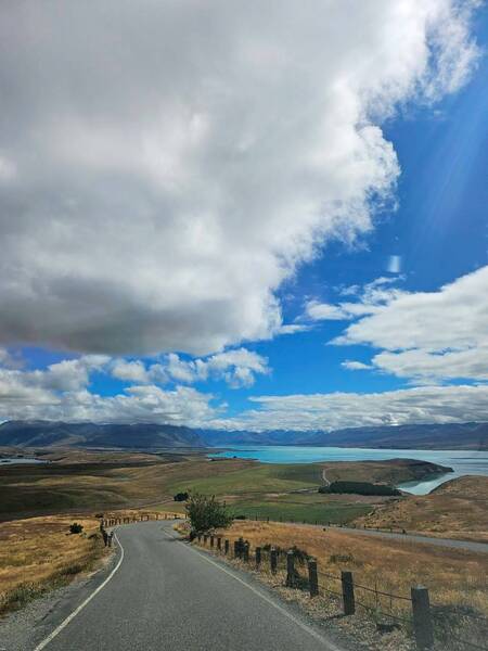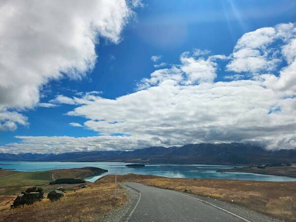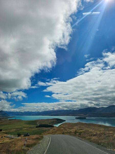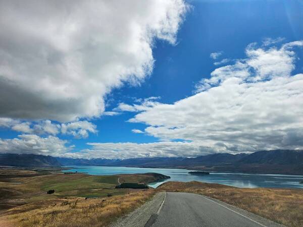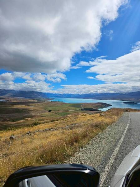 從基督城機場取得網上租好的車子後,驅車往Tekapo湖的路上,我們時時提醒開車的旅伴左轉靠左,右轉靠左,要習慣右駕真的得要有幾公里的習慣,還好紐西蘭路大車少。