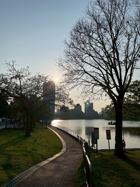 劍潭捷運站3號出口集合出發→圓山水神社→微風平台拍網美 →劍潭山H153M(小百岳#009)→老地方→文間山H184M→鄭成功廟山H216(北市市86號基石、路邊順撿)→义路3.1涼亭→論劍山→論劍亭(可午餐)→剪刀石山H258M→金面山H181M→泰安亭(下午茶)→竹嵩山→新坡尾山→碧湖山→碧湖公園→大湖餐館