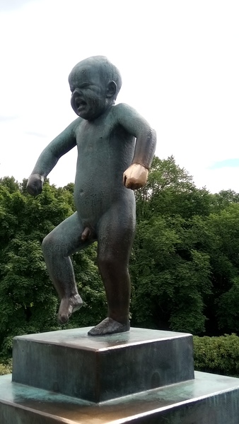 維格蘭雕塑公園,也稱為「人體公園」,所有的雕像都展現了跟人有關的一生,生老病死、悲歡喜樂,把人生的所有重要階段──出生、成長、戀愛、男歡女愛、結婚、生子、育兒的辛苦、孤寂、衰老。甚至生活細節和情緒,都在作品中真實呈現。其中最有名的就是──「憤怒的小孩」,全然展現了小男孩氣憤難平的天真耍賴表情。