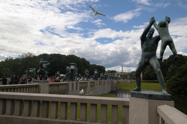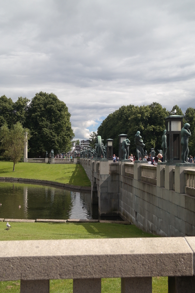 進入公園在右手邊會見到古斯塔夫‧維格蘭的紀念雕像,再來走過「維吉蘭橋」,橋的兩側就佇立了58座人物銅像。