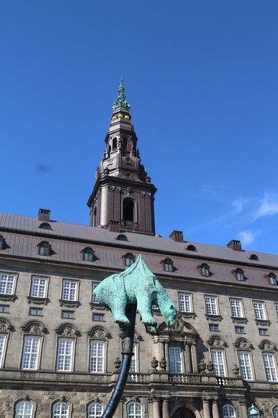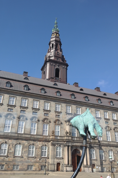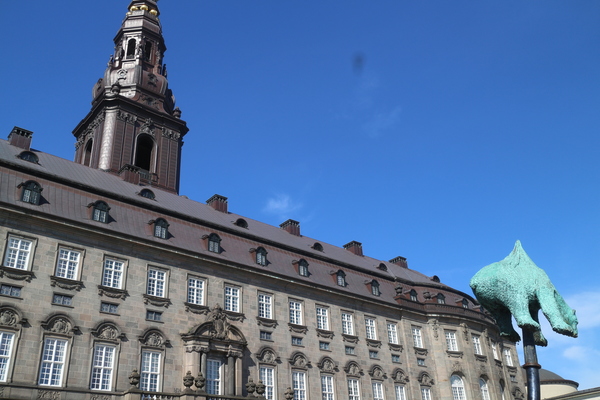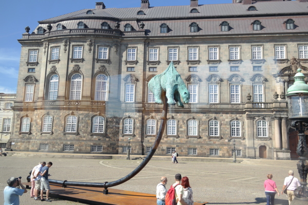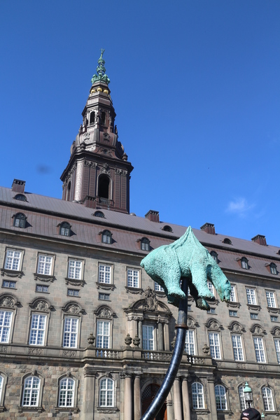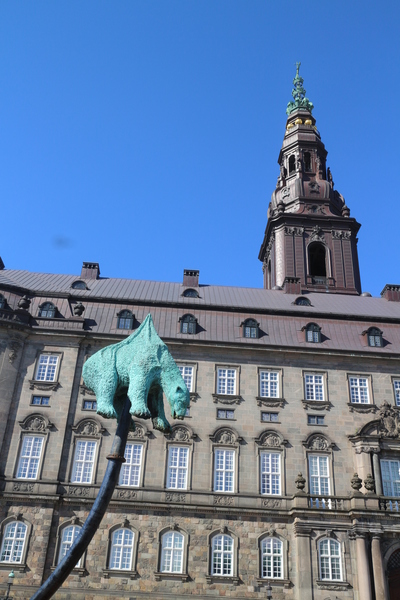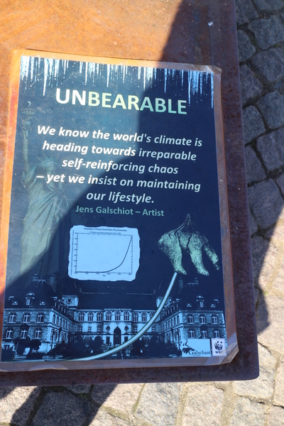 在哥本哈根古典又氣派的「市政廳」廣場前,有一把尖刀高高插起一頭北極熊,乍看之下,感到很突兀,不知這個裝置藝術意義何在?