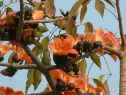 橘紅色的木棉花在中棲路上,開得茂盛、開得繁華,朵朵帶著嬌艷的美麗,怒放在枝頭上,讓人忍不住驚豔,常常感嘆為何忘了帶相機,於是失去記錄它美麗的一刻。