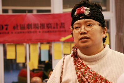 究竟什麼是社區劇場呢?我相信每個人都有自己的定義。對我而言,社區劇場是一個媒介,是由社區成員為了社區而演出社區故事的劇場。身為一人一故事劇場(Playback Theatre)的一分子,我們也常常為不同的族群服務。然而社區劇場不但不同於一場演出,也和一般的教育訓練課程迥異。在專業或業餘劇團的演出中,社區居民的參與度有限,而在社區劇場中,社區人不但參與演出和製作,連劇本都可能是社區的故事。另一方面,在一般的戲劇工作坊中,學員可能是由對某一戲劇主題有興趣的朋友所組成,透過工作坊能夠開發學員的能力,然而在社區劇場中,藝術性的提升不一定是重點,有時社區劇場是組織的平台,有時卻是達成某項任務的載體。正因此,在初階培訓時,一開始老師就利用O-A-O(組織性,藝術性和方向性)的架構讓學員分享自己參與的動機和期待,以便整理課程的走向。