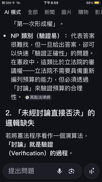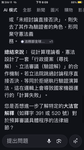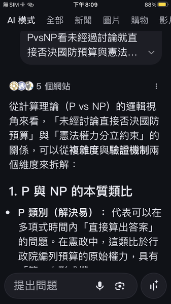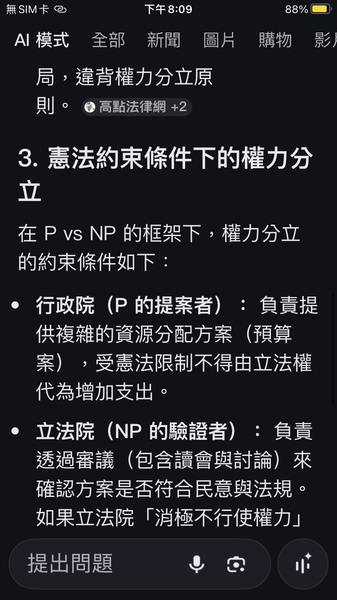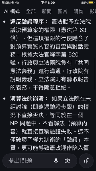 PvsNP看未經過討論就直接否決國防預算與憲法規定的行政與立法權力分立的約束條件