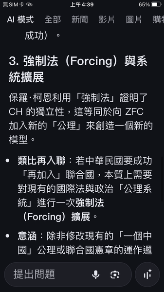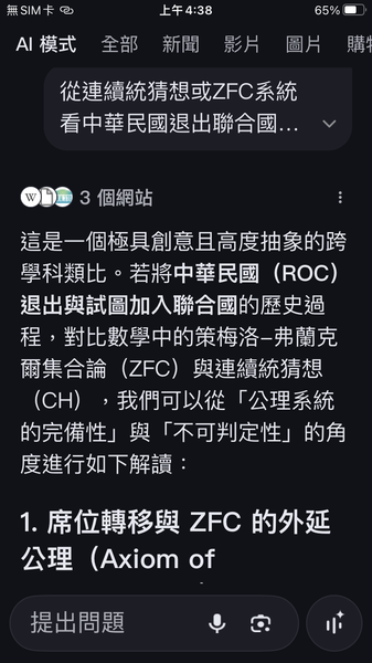 Q從連續統猜想或ZFC系統看中華民國退出聯合國再加入聯合國